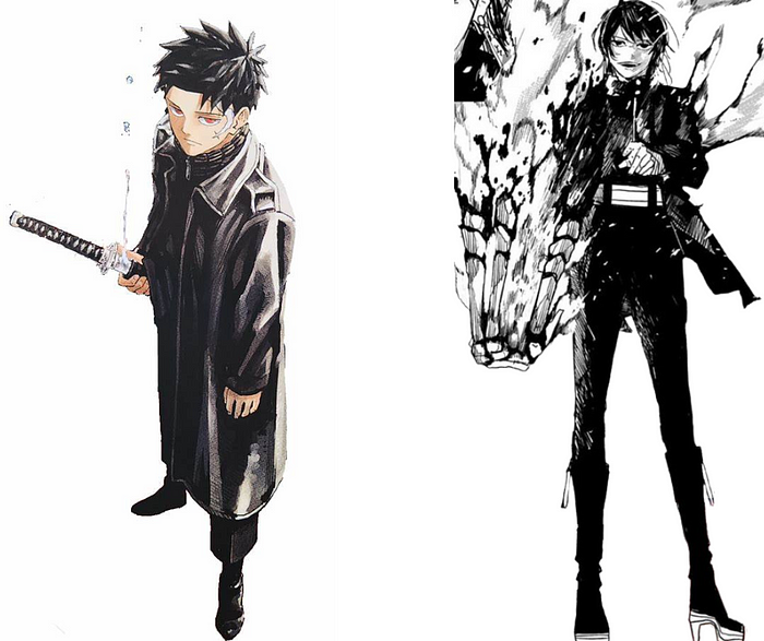 Most characters in Kagurabachi are covered head-to-toe in elaborate outfits. The main character sports a trench coat with a sweater underneath and presumably a shirt under that.