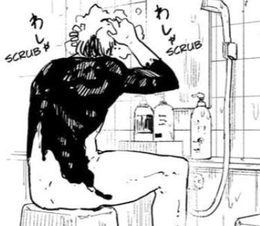 - Geto has a shower scene in the flashback arc where he’s completely nude.
